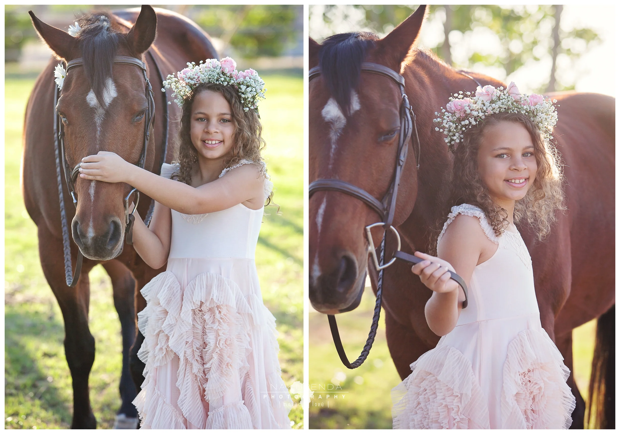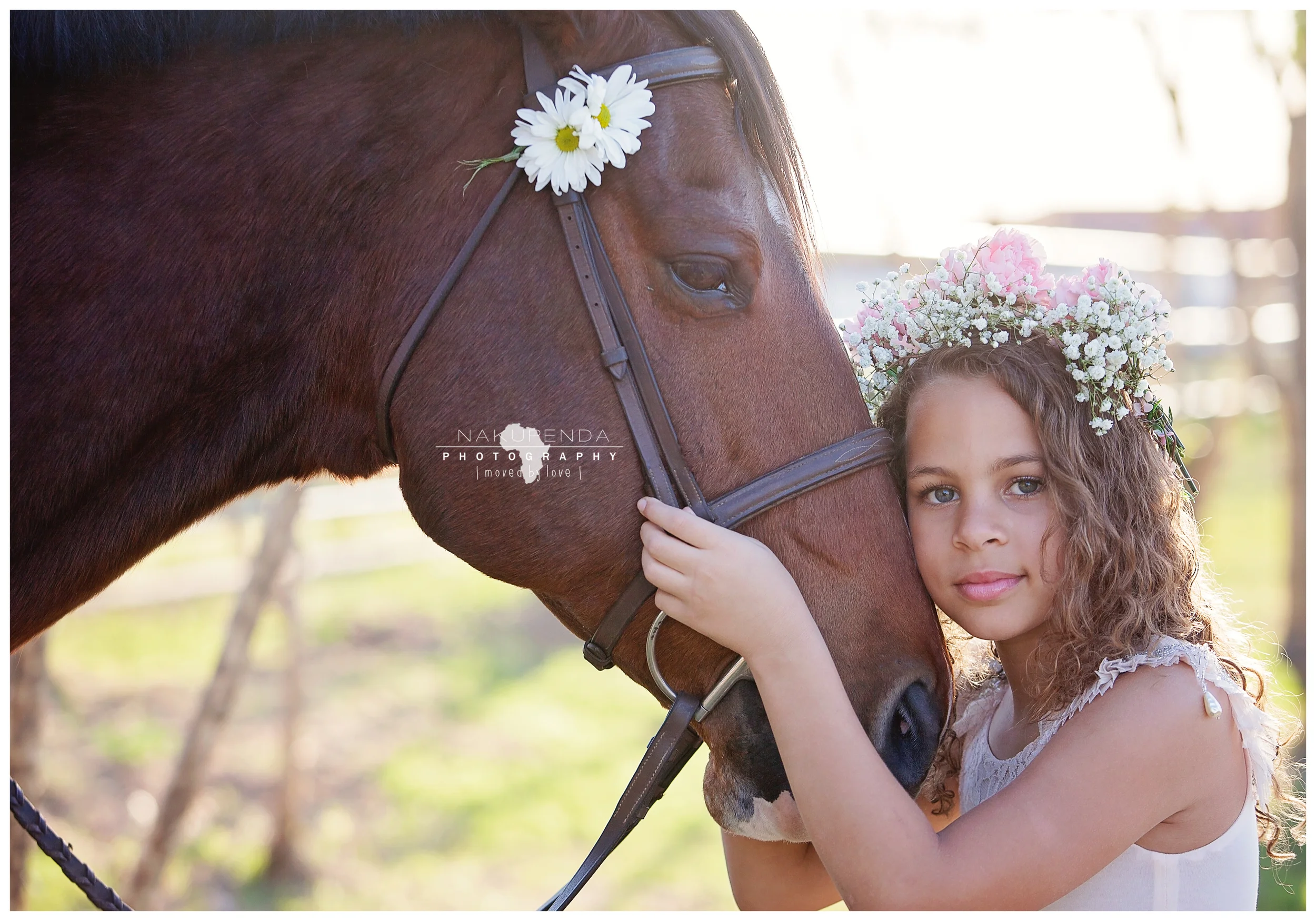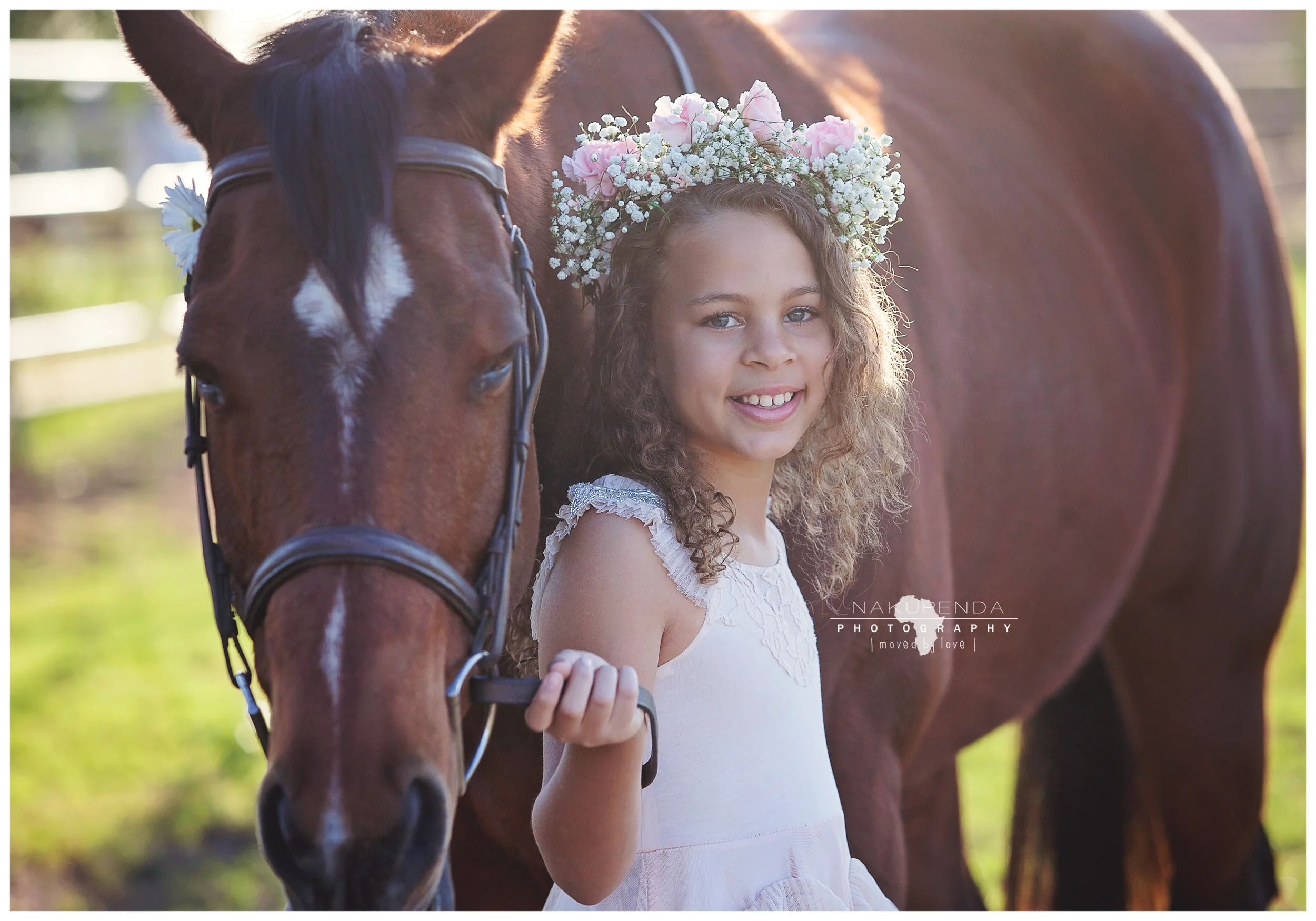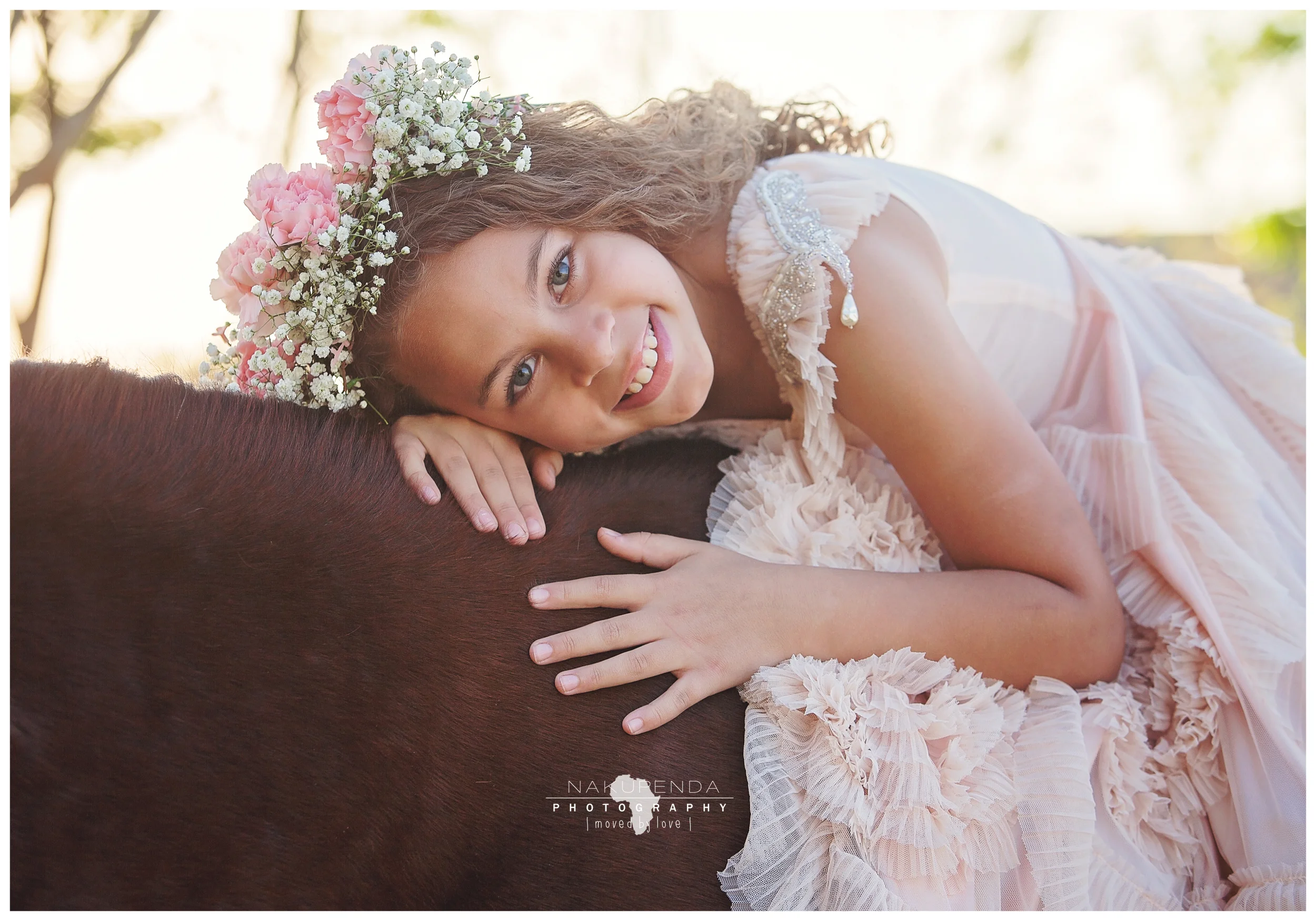 The genuine peace and joy she carries with her were evident in the quiet way she interacted with Boomer of Soaring Dreams. I was so thrilled when her mom booked a session with me because I finally was able to use my absolute favorite frock! Fresh baby's breath and carnations where the perfect final touch for this bright eyed beauty.