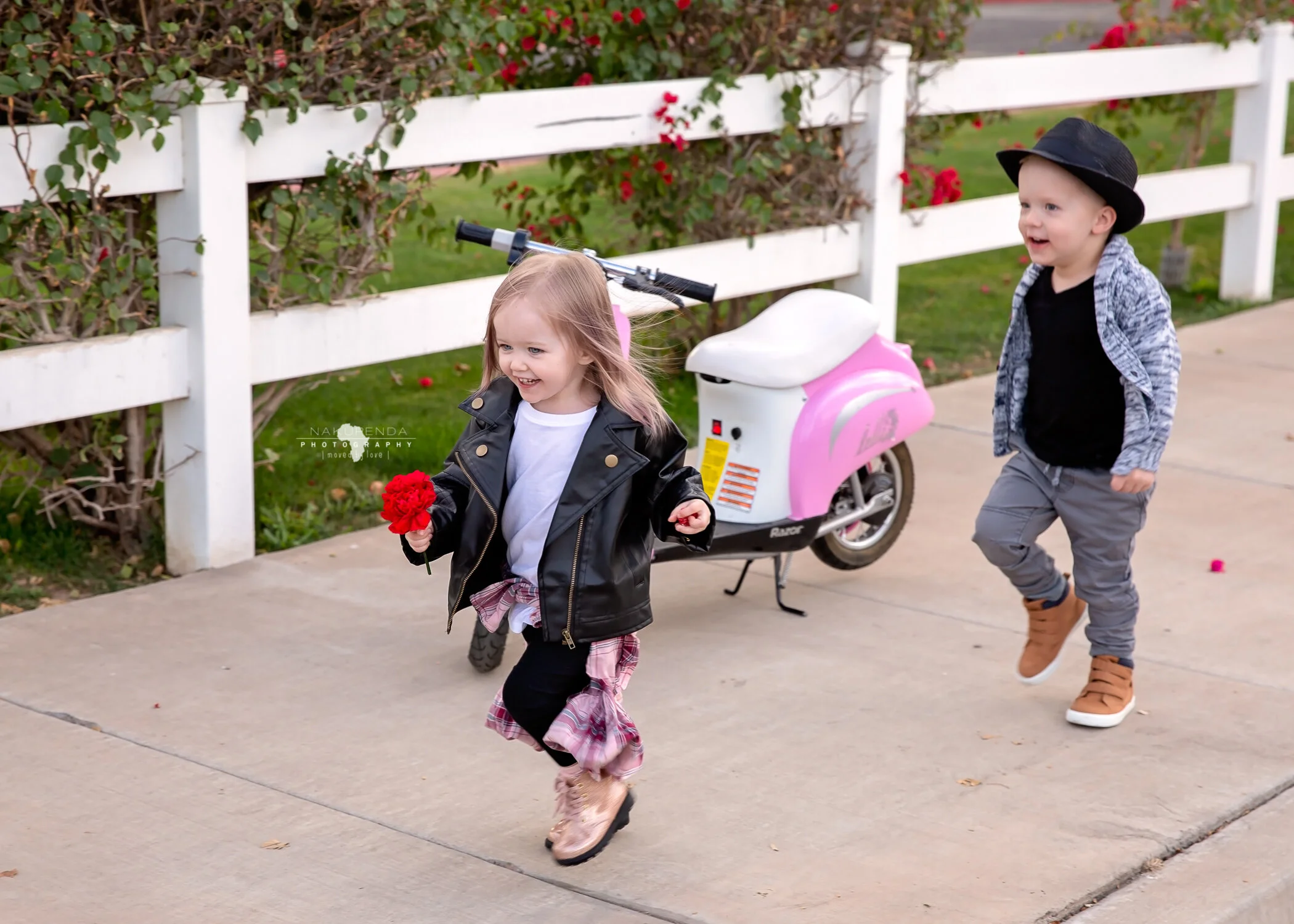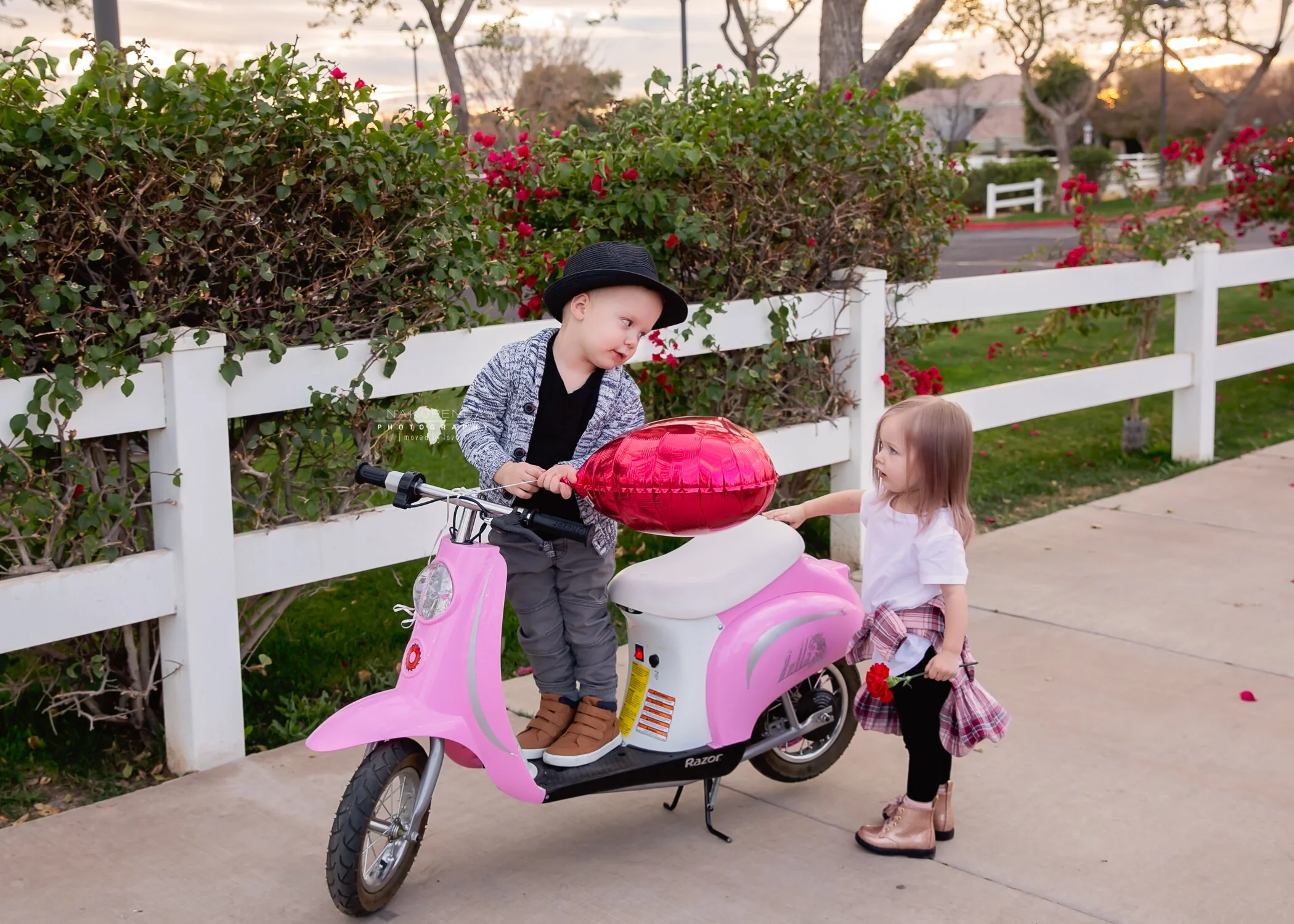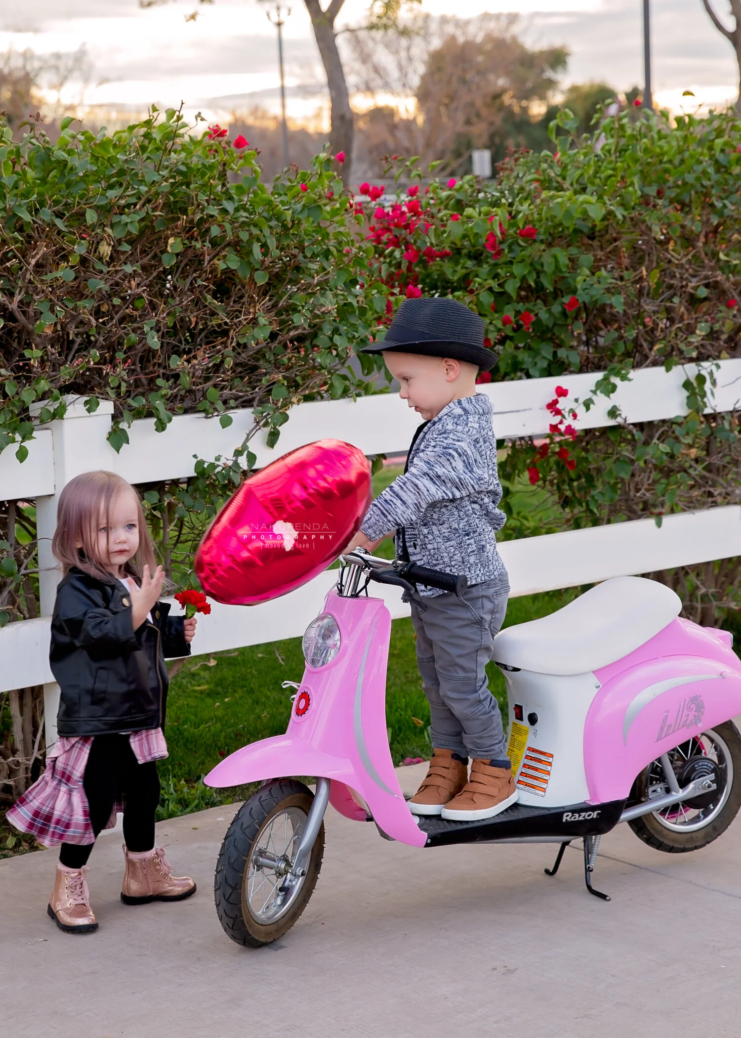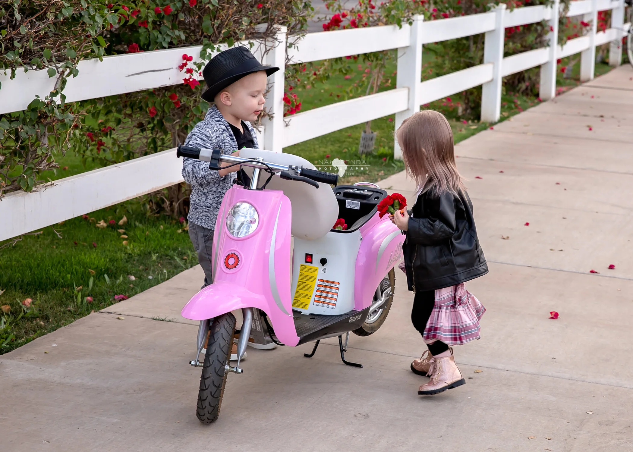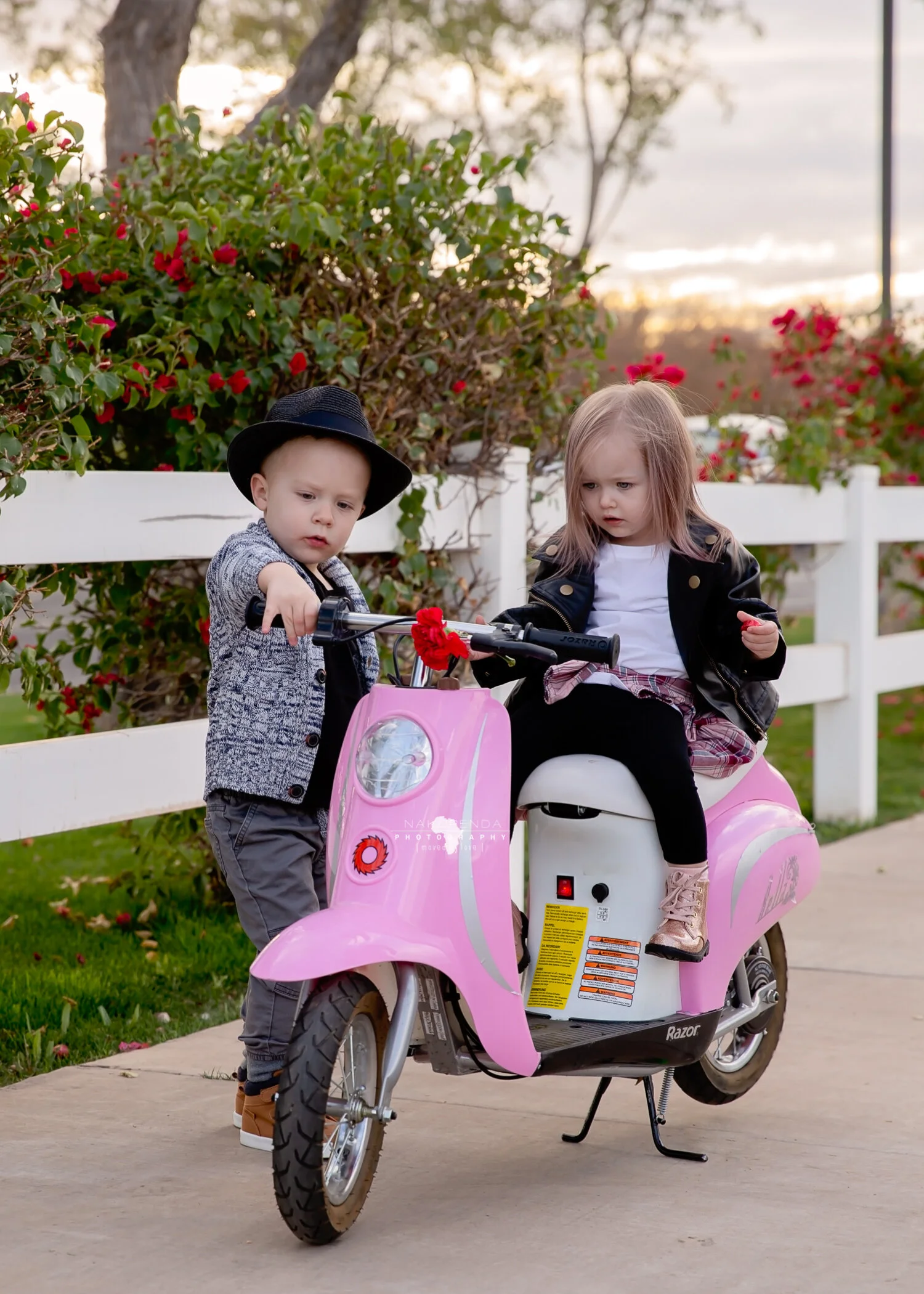 As I was brainstorming for this session I stumbled across this child sized vespa on Amazon and the entire session came tumbling together. Back in December these two met at a Christmas PJ session and they hit it off so I invited her along for the day.