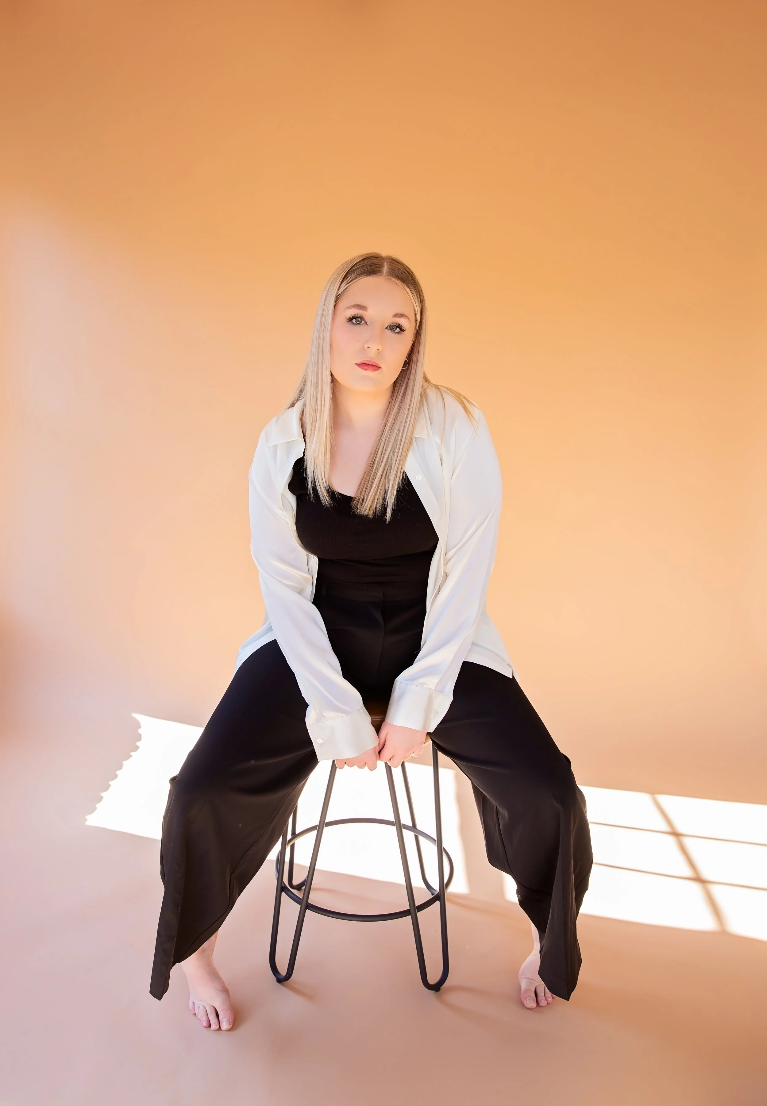 When Olivia’s mom reached out to me about her birthday pictures I could not have been more excited. We had just wrapped up a year of her on the model squad and I was honored she wanted to come back for more. Lately, my sessions as of late have trended towards styled sessions and lots of props and color. When Olivia explained that she wanted to step back from all of that for a simple studio session I was thrilled! I so rarely get anyone who is EXCITED about studio portraits and I knew it would be a fun time to explore new spaces with this amazing girl.