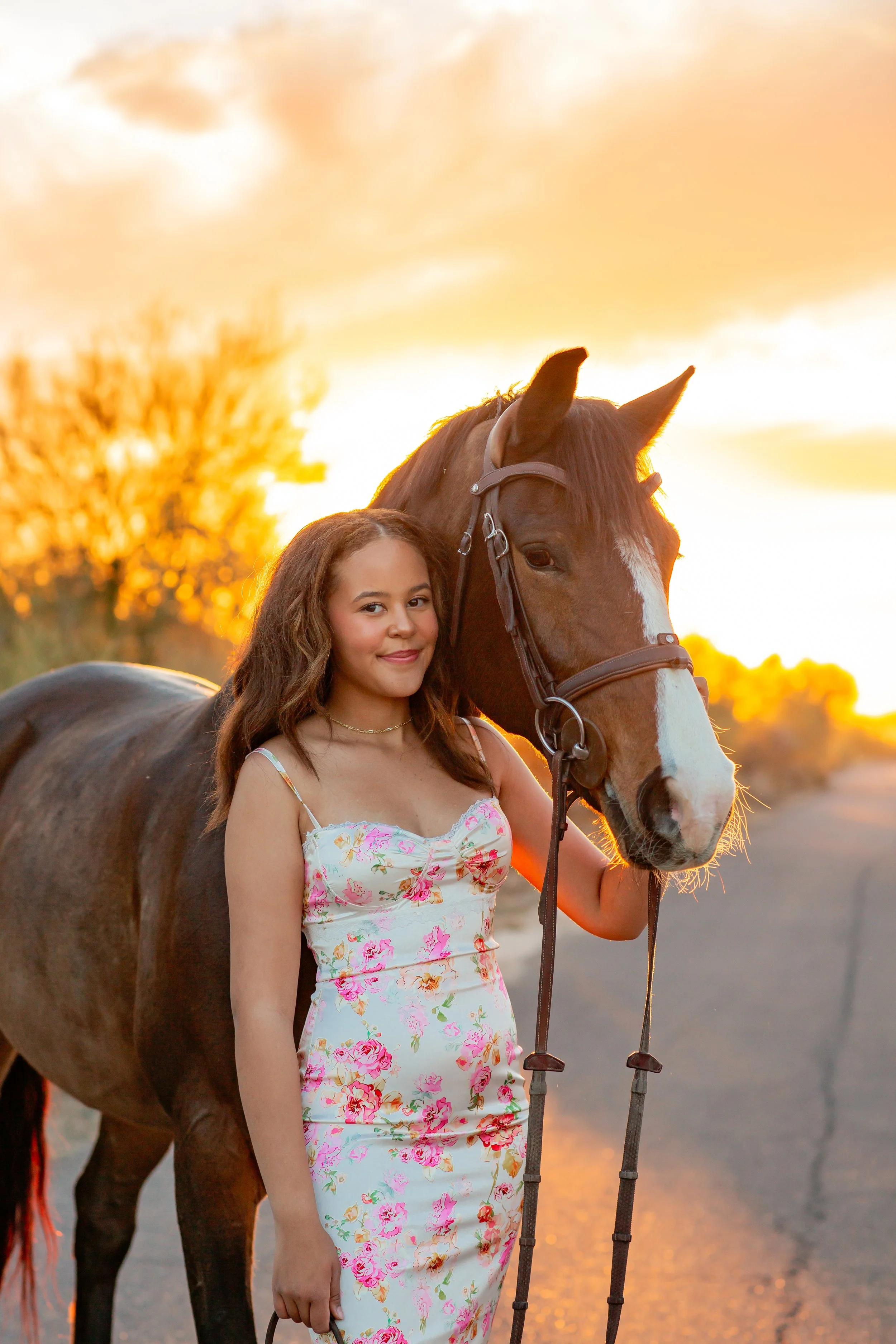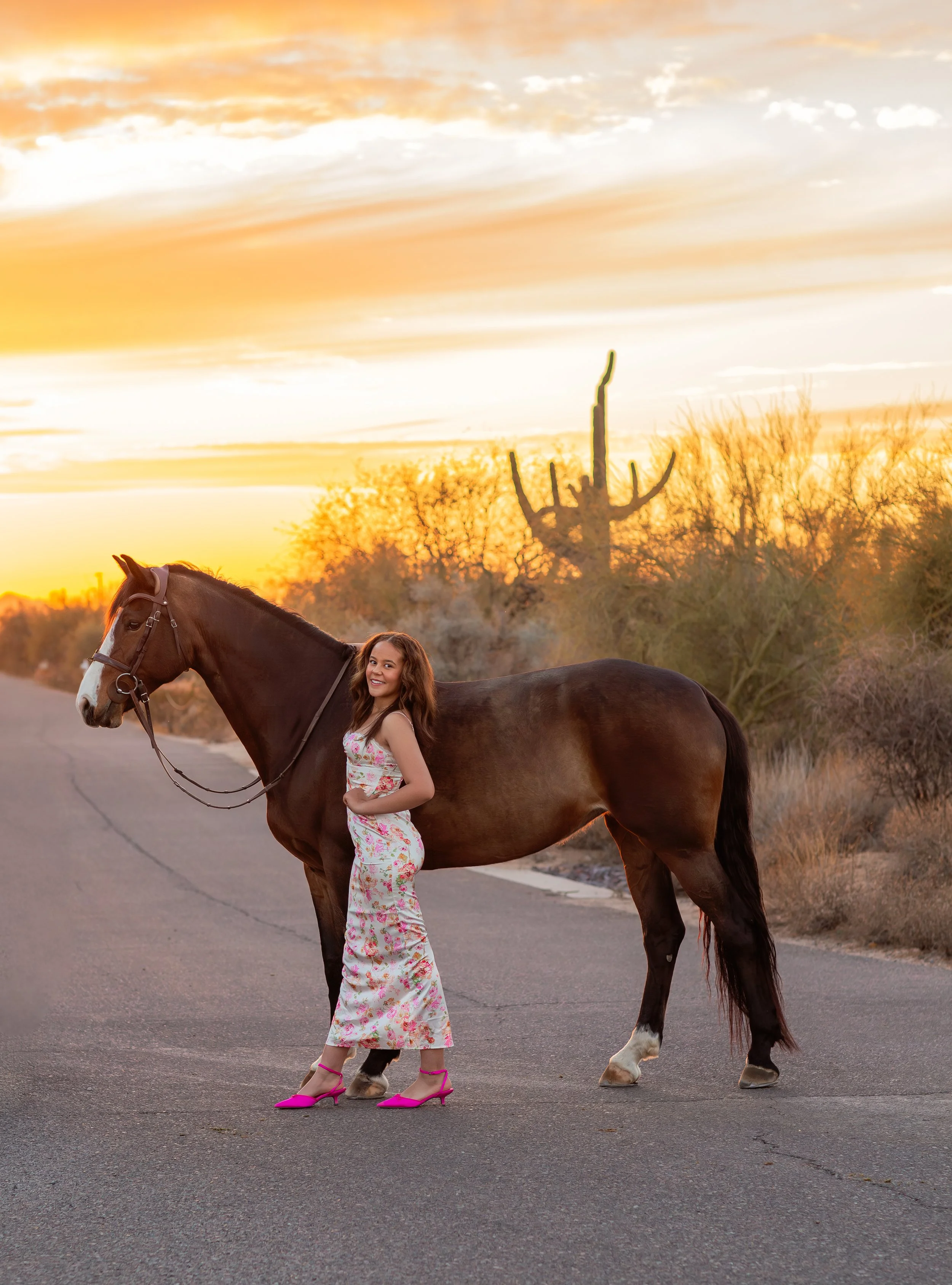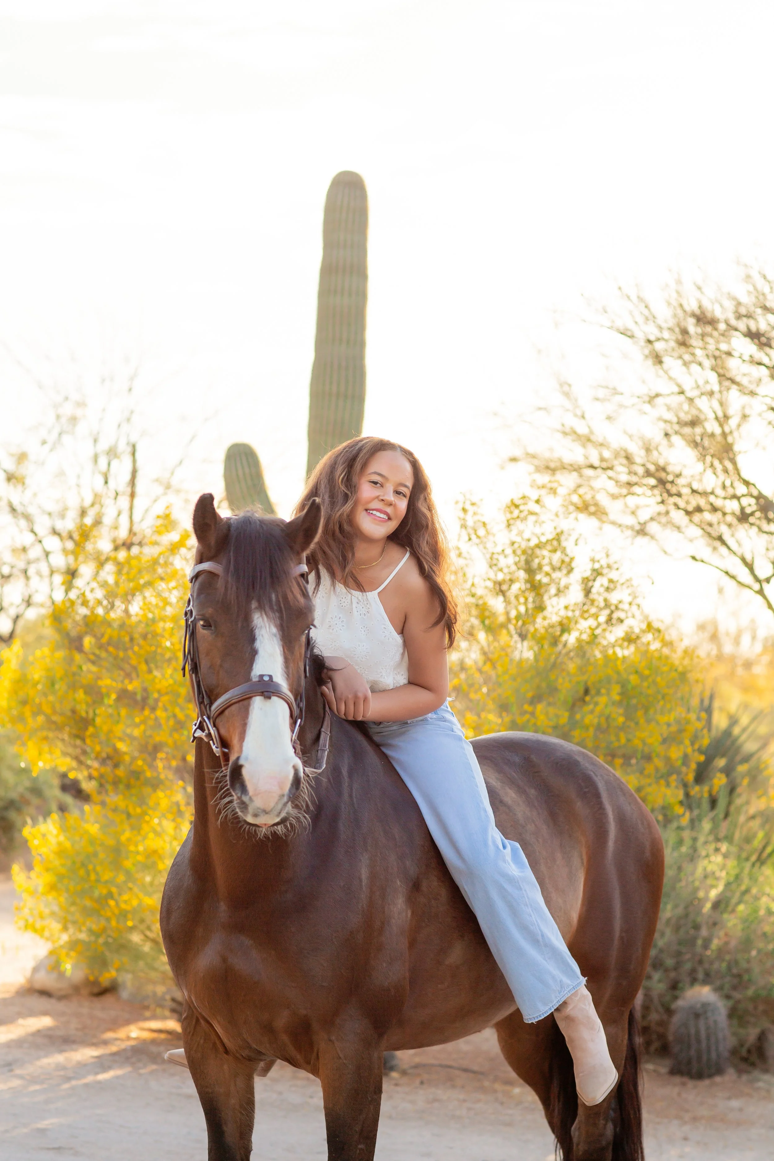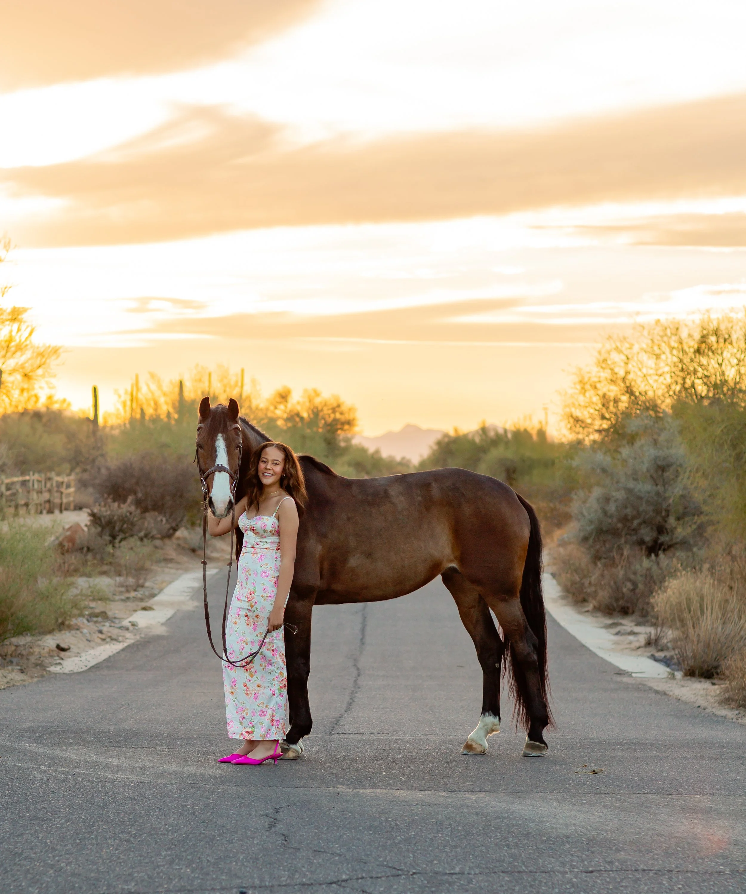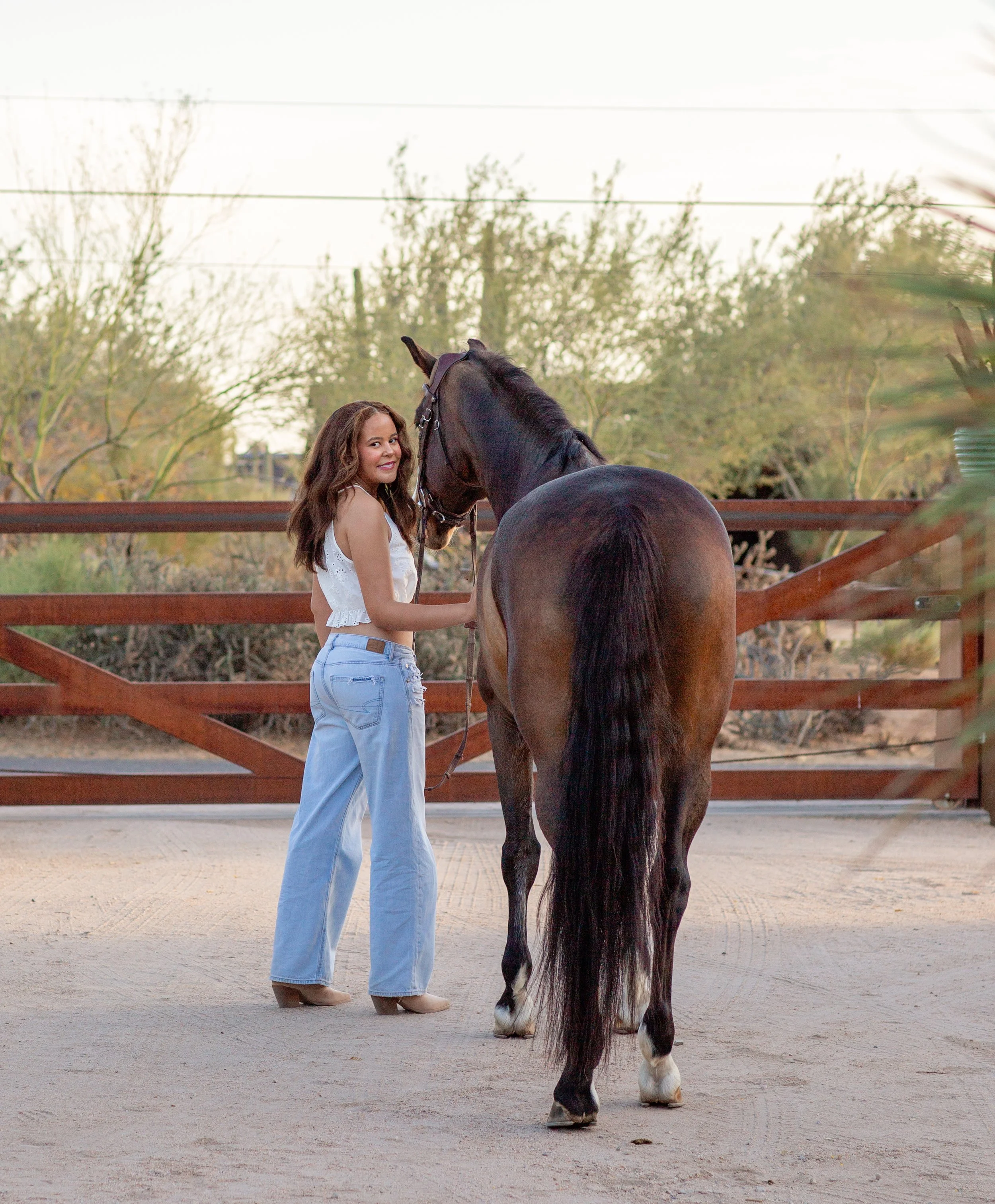 10 years have flown by since then and I’ve followed her journey with deep interest over the last decade. Finding your passion so young and getting to foster it the way she has is an incredible gift. Her journey has taken her through three stables as her desire to learn and grow as an equestrian has grown with her, ultimately landing her at Twisted Tree Farm in Scottsdale with her beautiful mare, Karat.